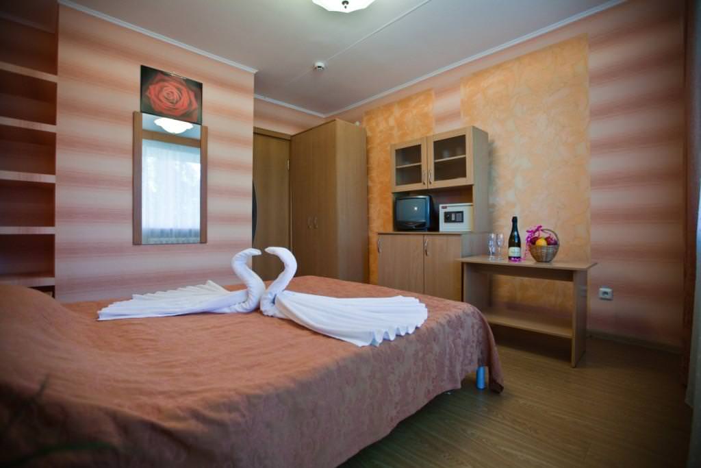 Площадь номера - 14 кв.м. Оснащение номера: 2- спальная кровать, ТВ, телефон, письменный стол, холодильник, стенка для посуды, сейф, шкаф, кондиционер, совмещенные душ и санузел, балкон. Номер оборудован электронным замком. В ванной комнате: совмещенные душ и санузел.