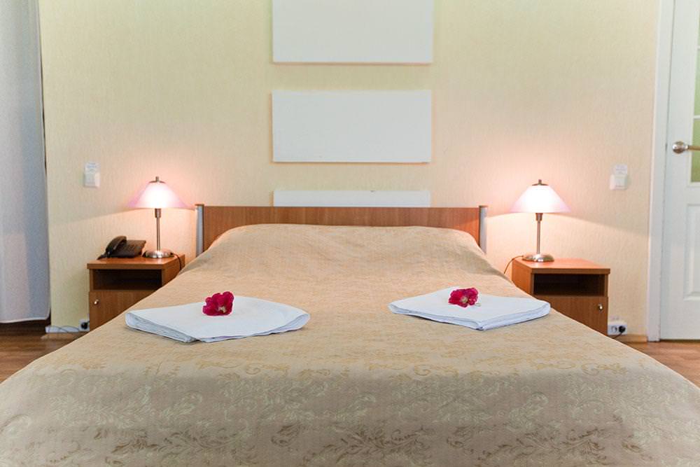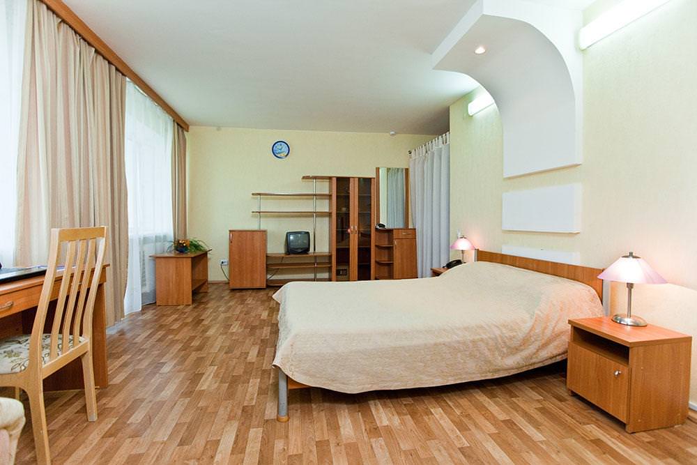 Площадь номера - 23,5 кв.м. В номера: 2-спальная кровать, диван, журнальный стол, ТВ, сейф, письменный стол, холодильник, стенка для посуды, телефон, гардероб, кондиционер, балкон. Номер оборудован электронным замком. В ванной комнате: совмещенные душевая кабина и санузел.